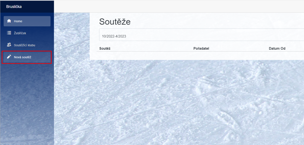 Na úvodní obrazovce vyberte „Nová soutěž“ v mobilu je menu schované pod ikonou ![]()