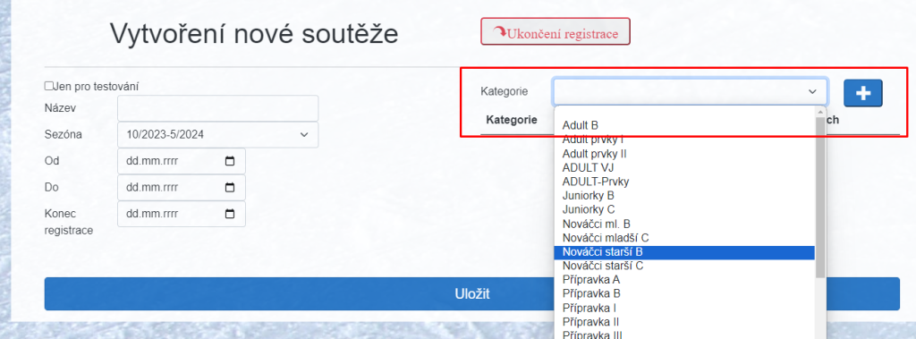 Zadejte jméno a datum soutěže.