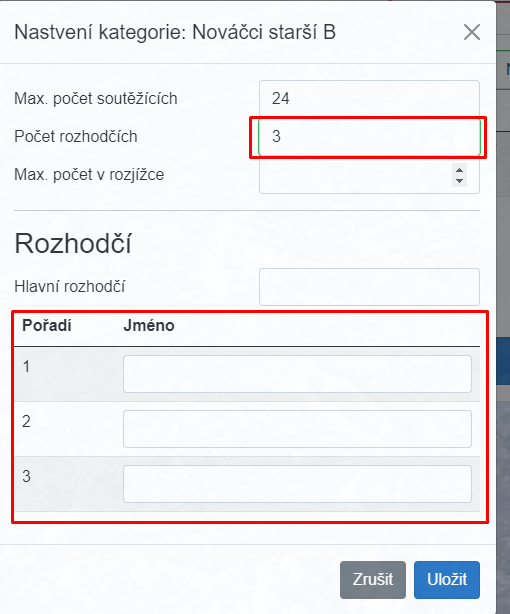 - Podle nastaveného počtu rozhodčích,
